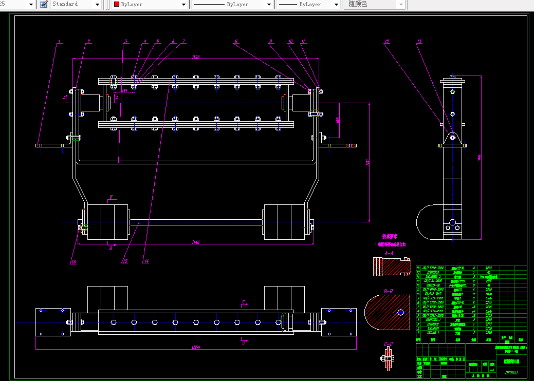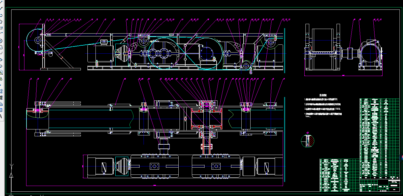 本设计为DX型钢丝绳芯式带式输送机,采用机头双滚筒驱动,在保证滚筒不发生打滑的前提下来传递较大的功率,降低输送带的张力和提高使用寿命。文中根据第二滚筒围包角用足,依此算出输送机的各种参数,进行结构设计。由于倾角较大,按第二滚筒围包角用足进行等驱动功率单元法分配,本设计采用 分配,得出尾部张力最小,根据布置原则,张紧装置一般布置在输送带张力最小处,所以本文采用重载车式张紧装置进行张紧。如今,带式输送机正向长距离、高带速、大功率、大运量的大型化方向发展,使其在煤炭行业得到广泛应用。