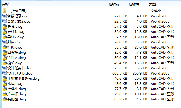 这套设计共花我4周的时间从图书馆查资料、和同学们讨论、分析和整理成文,决定做手机充电器外壳的设计。设计中从材料的选取,工艺分析等来设计的。另外该套模具巧妙的设计了拉料杆,保证了凝料在第一次分型时留在凹模板一侧,顶杆推动推杆固定板时凝料自动脱落,实现了从泣射到塑件被顶出的全自动化,提高了生产效率。滑块上的导轨既起导向功能,出便于安装在凸模板上。由于塑件是壁厚较薄而均匀的塑件,而且,凸模部分有许多孔和凸台,有较大的包紧力,为保正塑件的推出,故设计了多根推杆水平衡推出力。经过生产实践证明,该副模具的开合模动作完全符合设计要求,适于大批量生产。