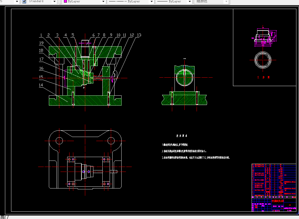 全篇共分为三章。第一章是设计油泵壳体模具的工艺方案的确定,主要根据所给制件特点加以分析,设计出合理的模具,这里共设计出两套模具。第二章是落料拉深复合模的设计,其中包括一些典型结构的选择和一些非标准零件的设计。第三章是冲孔翻边复合模的设计,包括各种模具零件的选择和一些零件尺寸的计算。第一套模具是典型的结构,第二套模具则根据制件工艺要求进行了部分创新。