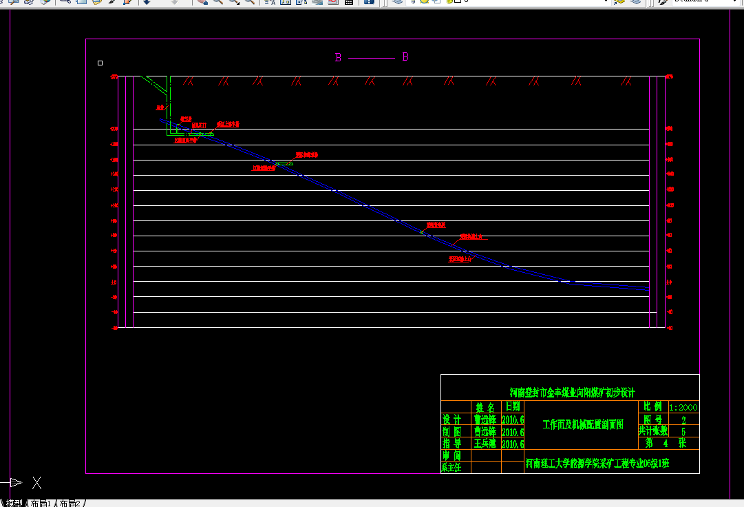 本设计的井田面积为3平方千米,年产量30万吨。井田内煤层赋存比较稳定,煤层倾角18度,平均煤厚3.2m,整体地质条件比较简单。沼气和二氧化碳含量相对不高,涌水量也不大。根据实际的地质资料情况进行井田开拓和准备方式的初步设计,该矿井决定采用立井单水平开采,设计采用爆破采煤一次采全高回采工艺,走向长壁采煤法,用全部跨落法处理采空区。并对矿井运输、矿井提升、矿井排水和矿井通风等各个生产系统的设备选型计算,以及对矿井安全技术措施和环境保护提出要求,完成整个矿井的初步设计。矿井全部实现机械化,采用先进技术和借鉴已实现高产高效现代化矿井的经验,实现一矿一面高产高效矿井从而达到良好的经济效益和社会效益。