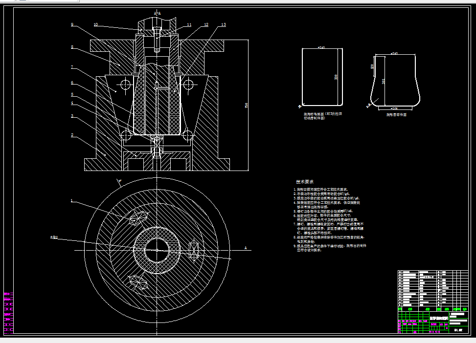 在文档中第一部分,主要叙述了冲压模具的发展状况,说明了冲压模具的重要性与本次设计的意义,接着是对冲压件的工艺分析,完成了水壶壳体工艺方案的确定。第二部分,对零件排样图的设计,完成了材料利用率的计算。再进行冲裁工艺力的计算和冲裁模工作部分的设计计算,对选择冲压设备提供依据。最后对主要零部件的设计和标准件的选择,为本次设计模具的绘制和模具的成形提供依据,以及为装配图各尺寸提供依据。通过前面的设计方案画出模具各零件图和装配图。