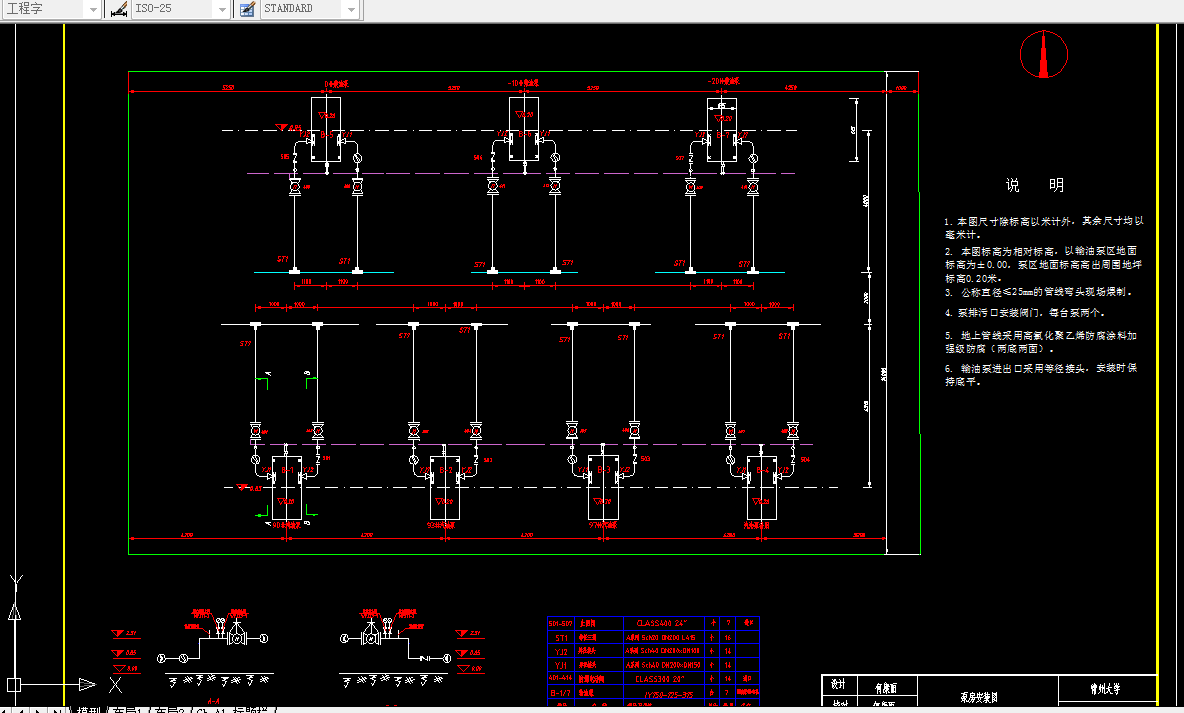 绘图部分依据计算说明、规范和经济因素,在满足生产要求的条件下,进行了较为经济合理的布局,并为油库将来的扩建和发展留有余地。