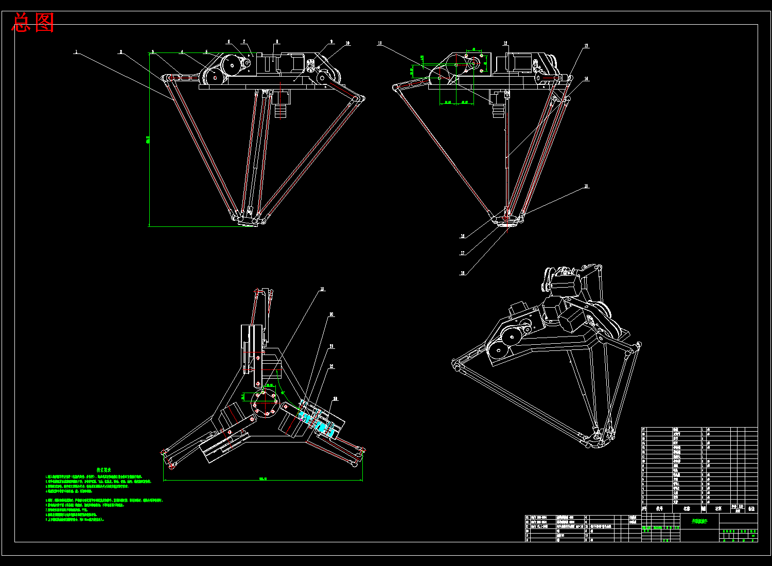 并联机器人是人类全新的机器人,它具有刚度大!承载能力强!精度高!自重负荷比小!动力性能好等一系列优点,与目前广泛应用的串联机器人在应用上构成互补关系,因而扩大了机器人的应用领域"Delta并联机器人是最典型的空间三自由度移动的并联机构,Delta机构整体结构简单!紧凑,驱动部分均布于固定平台,这些特点使它具有良好的运动学和动力学特性,实验条件下末端控制加速度可高达5.09-(重力加速度)"大量的实践证明,Delta机构是迄今为止设计最成功的并联机构之一"目前,Delta并联机器人己经广泛应用于化妆品!食品和药品的包装和电子产品的装配"机器人的运动学是机器人动力学!机器人控制和规划的基础,在机器人研究中占有重要的地位"运动学研究内容包括正向运动学和反向运动学,对于并联机器人,其反向运动学相对简单而正向运动学复杂"本文对三自由度Delta机器人运动学进行了研究"通过对Delta机器人结构的分析,建立了运动学模型,确定了各个构件的空间位姿"基于动平台与静平台之间的矢 量关系以及机构的约束方程,建立了该机构的运动学方程,推导出位置反解公式,同时给出了位置正解的数值解法"在位置反解方程的基础上,分析了Delta机器人的工作空间,推导出该机构的雅可比矩阵,并对速度和加速度进行了求解.。