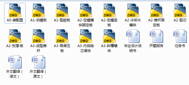 本次设计根据塑件尺寸材料确定同型号注塑机的型号,总体知道模具大概的结构方案,再根据浇注方式、推出机构的确定、导出机构的确立,分型抽芯机构的方式,脱模机构的运动,温度的循环冷却控制和排气系统的确定,注射机参数的校核,型腔数目的计算,型芯型腔长度、宽度、高度的有关计算,型腔侧壁、底板厚度的刚度强度计算,推出力的有关计算,冷却流道面积等相关的设计计算,正确选择国家标准模架,结合所学的模具知识和CAD、soliworks画图工具,绘制模具总装结构图和零件的工作图,试模和修模后最终完成本次毕业设计。