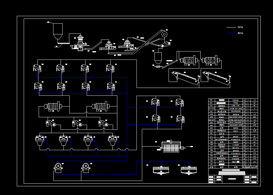 本设计为辽宁朝阳240万吨/年铁矿选矿厂的初步设计,矿石属于中等可碎性矿石,要求采用预先抛尾。原矿品位为22.25%,要求精矿品位达到66%。设计主要包括说明书和图纸两大部分。说明书主要内容为工艺流程的确定和主要及辅助设备的选择。设计采用三段一闭路破碎,阶段磨矿阶段选别流程。两段磨矿中矿石经过五段磁选达到要求品位,尾矿经强磁回收其中弱磁性矿物,兼顾保证了精矿的品位与回收率。所用磨矿选别工艺技术上成熟,经济上合理,生产上可靠,具有较强可实施性。图纸主要绘制了数质量流程图、破碎车间和磨矿选别车间各剖面图,以此确定各设备定位尺寸。选矿厂建设在较缓的山坡上,采用阶梯布置,以此促成矿浆自流,并减少建设费用。