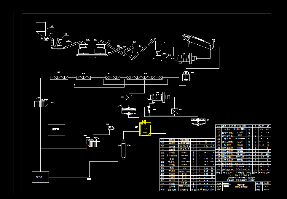 本设计的选矿厂是日处理量600t的阜新选矿厂设计。矿石类型为金矿,黄铁矿为金的主要载体矿物,根据矿石性质采用浮选和氰化浸出的方法进行选别。工艺分为三段一闭路破碎,一段磨矿优先富集,一次粗选,三次精选,浮选尾矿经过二段磨矿,氰化浸出。主要选用的设备有破碎机、磨矿机、筛分机、分级机、浮选机、浸出槽、净化槽、压滤机、浓缩机等。浮选工艺指标为原矿品位2.86 ,精矿品位60 ,回收率60%。氰化浸出工艺指标为浸出率98.5%,解析率99%,氰化率90%,冶炼回收率99%。可见该厂上技术可行,符合当今发展趋势。