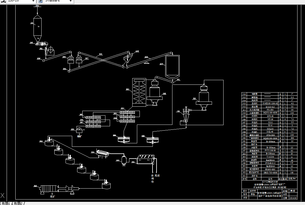 对设计工艺流程进行了工艺指标计算,包括破碎、筛分、磨矿、浮选、氰化、矿浆和脱水流程。