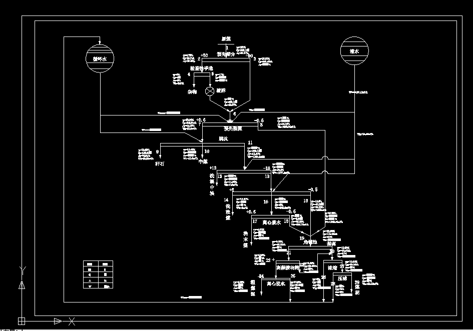 设计首先对原煤质量情况进行综合分析,绘制可选性曲线,并对原煤进行可选性评定,可选性为易选。全面了解原煤煤质特点,在此基础上完成了选煤流程的确定;原煤出井口检查性首选除杂除去铁器和杂物,筛上物破碎后进入原煤仓。出仓后先预先脱泥,然后进入主选车间,跳汰分级,出的精煤经筛分后经皮带运至混中块煤仓与粒煤仓,末煤脱水后出产品,筛下物与预先脱泥筛下物经角锥池与浓缩机进行煤泥处理,粗煤泥混入末煤中,煤泥压滤后运至煤泥场。然后进行了流程计算,设备选型,厂房布置,经济概算,图纸绘制等工作。