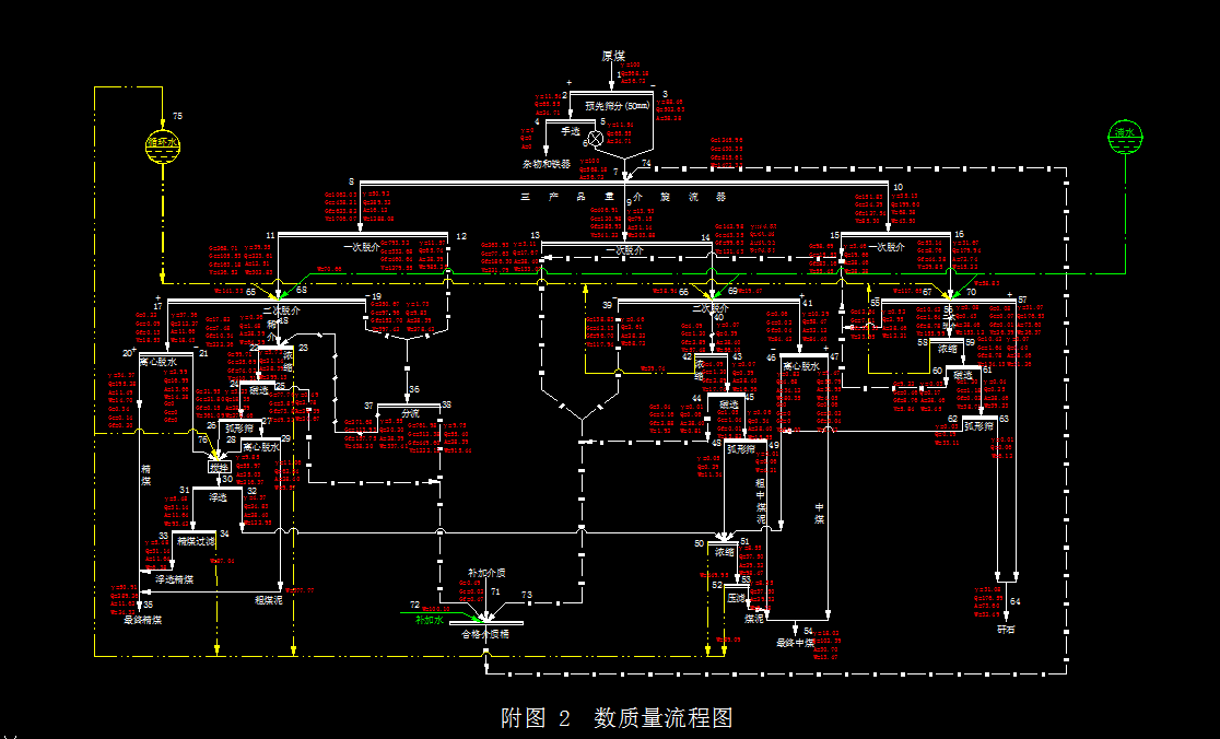 洗水闭路循环,防止了废水污染。依据工艺流程图完成了工艺流程数质量计算,设备选型,