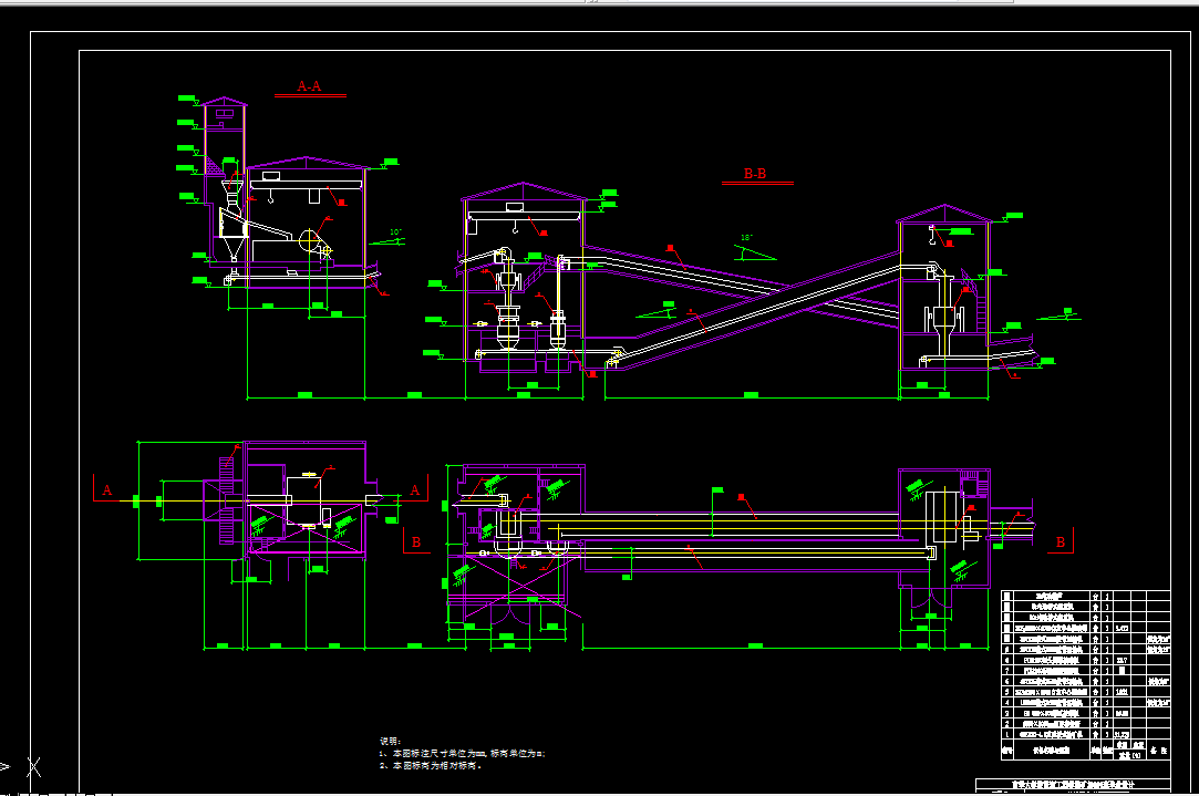 设计还进行了厂房的总体布置,并进行了厂房内的设备配置。根据选厂的地形条件,沿山坡地布置,其中,粗碎、中细碎、筛分厂房分开布置。磨矿浮选共厂房配置,其中磨矿采用纵向配置,浮选机采用横向配置。浓缩机配置在露天,过滤机与精矿仓配置在厂房内。完成了原则流程图、数质量及矿浆流程图、设备形象联系图、破碎筛分、磨浮、脱水车间平断面图共5张图纸。