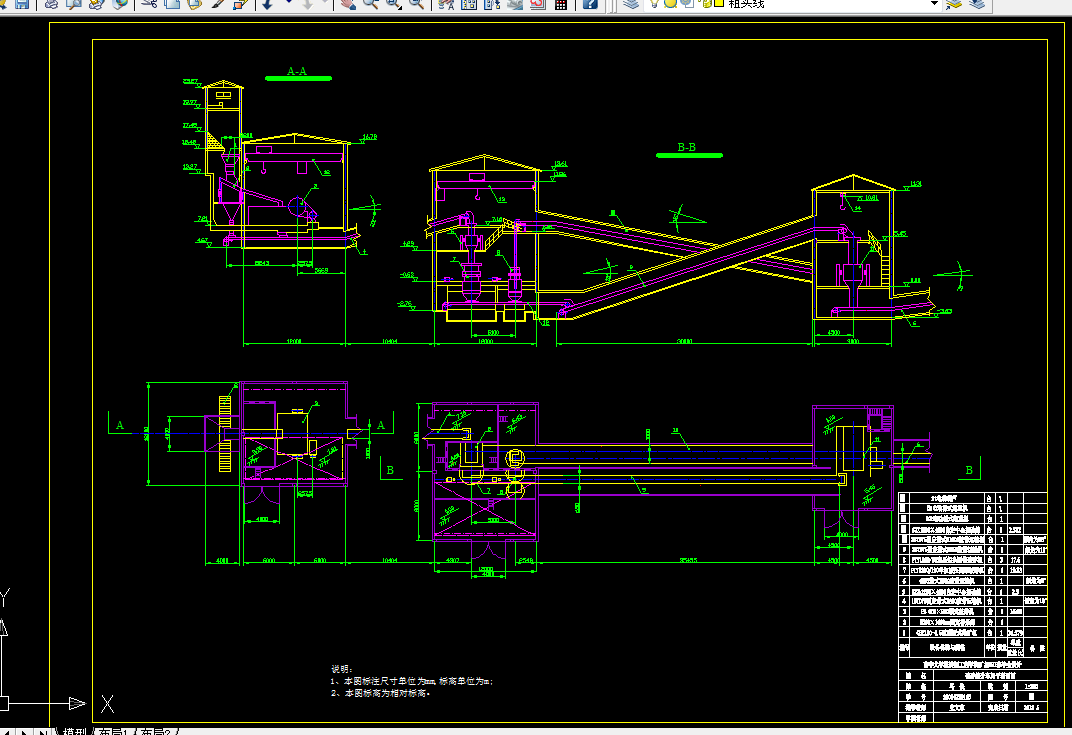 进行了厂房总体布置,并进行了厂房内的设备配置。根据选厂的地形条件,沿山坡地布置,其中,粗碎、细碎、筛分厂房共厂房配置。磨矿浮选共厂房配置,其中磨矿采用纵向配置,浮选机采用横向配置。浓缩机配置在露天,过滤机与精矿仓配置在厂房内。完成了选矿厂平面布置图,选矿厂设备平面布置图(示意图),工艺流程图,全厂设备形象系统图和数质量、矿浆流程图共5张。