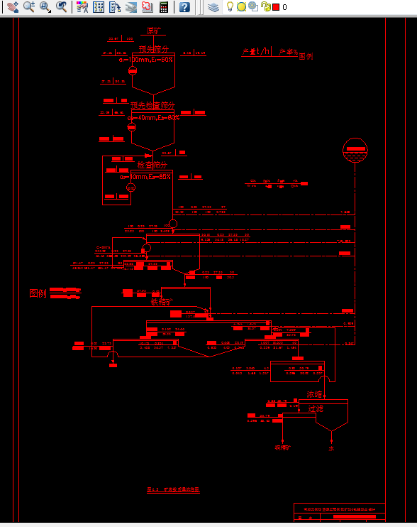 对设计工艺流程进行了工艺指标计算,包括破碎、筛分、磨矿、浮选(包括矿浆流程)和脱水流程。对破碎、筛分、磨矿、分级、浮选及脱水设备进行了选择和计算,确定了工艺所需的工艺设备。