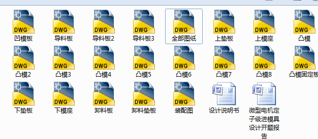 本课题介绍了微型电动机定多工位级进模的冲压工艺和模具结构设计,并应用UG软件对其进行级进模具设计,解决了模具排样的难点,设计的模具机构应用于工程实践,产生了较好的效益。本文主要介绍了现代模具的基本概述,冷冲压模具的发展状况以及特点,级进模的概念、工作过程及特点,提出了本课题研究的内容以及选题的意义,以及本课题的整个设计过程,根据课题所提供的数据进行设计,包括:设计步距与定距的方式、排样图的设计、对冲压力、卸料力、推件力、压力中心、冲裁间隙、凸凹模刃口尺寸的计算、压力机的选择、本模具的总体设计以及主要零部件的设计。