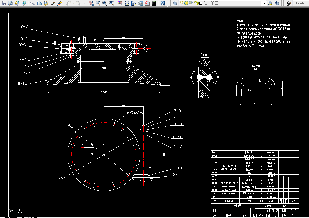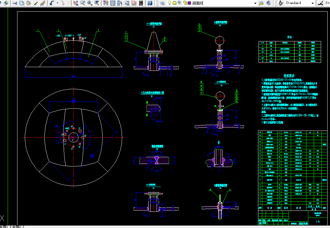 完成了球罐各部分的计算之后,参照相关的标准对球罐附件进行选用和设置。待球罐各组成部分都确定了,最后,制定球罐的焊接及制造工艺,对各部件进行焊接组装。