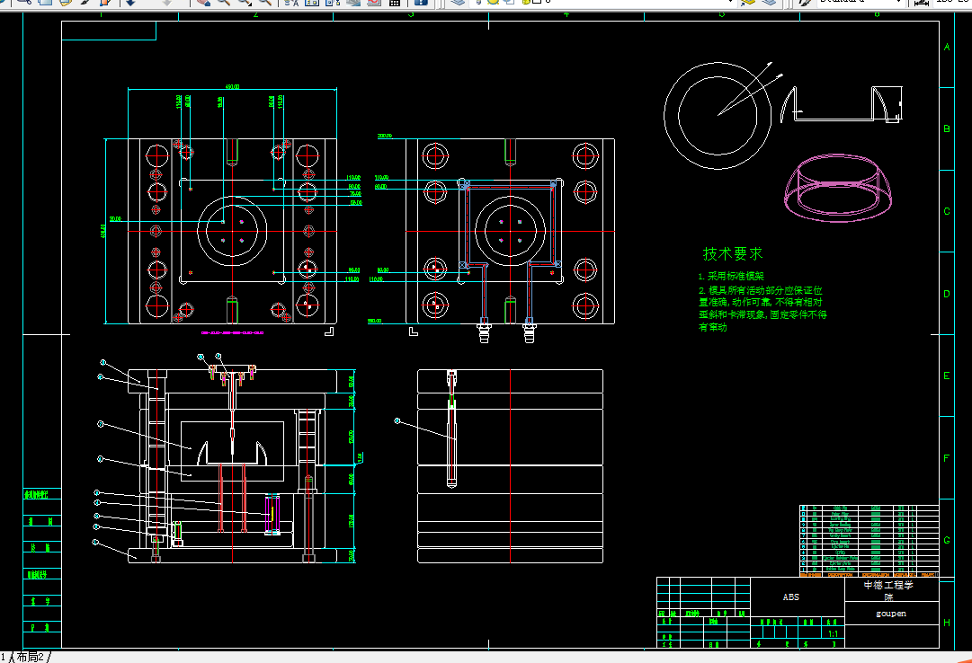 本次设计通过分析塑料狗粮碗的用途、材料、结构,确定了产品的表面精度和尺寸精度。在此基础上分析,通过合理选择分型面,确定模具型腔数目,选择合适的材料和注塑机等一系列工作,最终得出此塑件的成型方案。设计中使用AUOTOCAD和UG软件完成图纸的绘制。