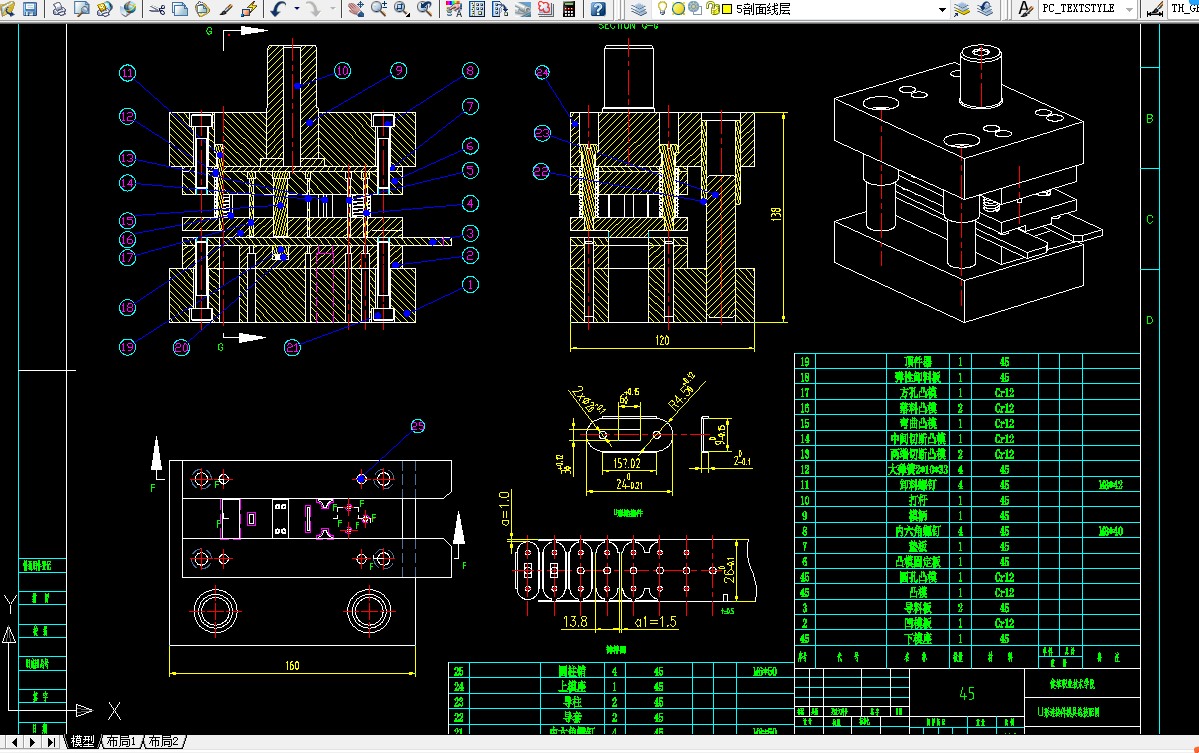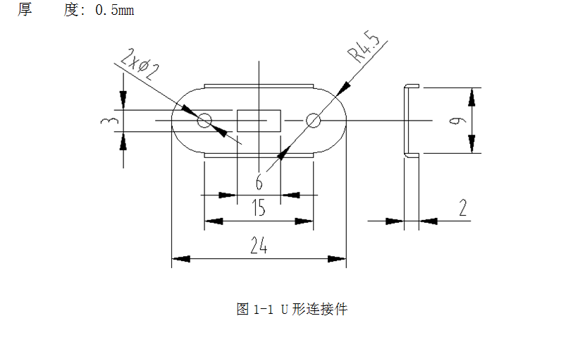 U形连接件的冲压工艺和模具设计是通过工件的工艺分析,包括材料分析、产品结构形状分析,从而确定工艺方案为级进模。