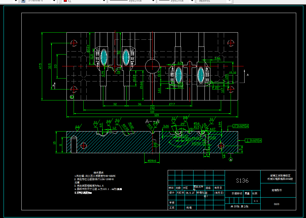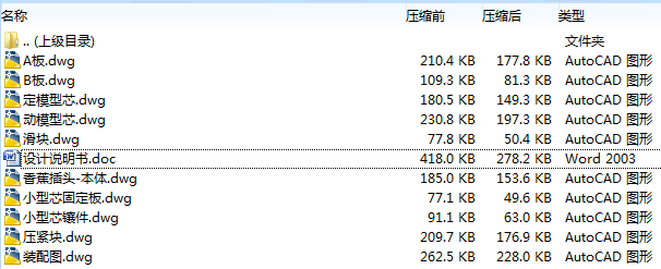 模具总装图一张、动、定模板、凸模、凹模、定位圈、浇口套、型芯等所有非标准零件图及电子文件(即*.doc/*.dwg/*.prt/*.asm文件,其中至少要有一张1号以上的计算机绘图)。图幅总量2~2.5张A0.