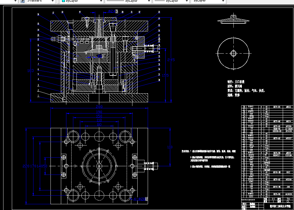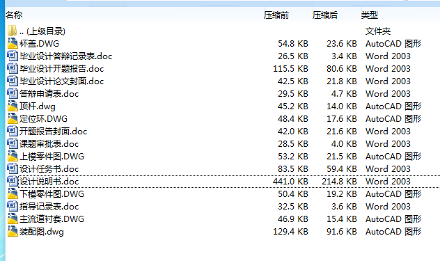本文是关于注塑模的设计,设计的制品是大口杯盖。首先对制品进行尺寸的选择和性能形状的分析,然后根据分析选择注塑材料和注射机。接着利用PRO/E进行大口杯盖的实体设计,并进行模具设计,也就是对模具的型腔、型芯和浇注系统进行设计,再利用AutoCAD画出整个模具的装配图。最后是型腔的CAM加工设计。