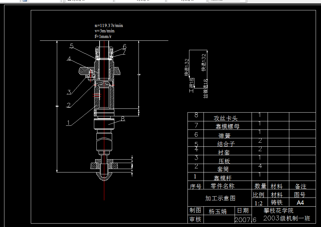 本文对离合器压盘螺纹孔的加工工艺进行了详细的分析,就其孔的加工提出了“一次装夹,单工位加工,达到产品图样的精度要求”的思路。根据这一思路设计了四轴头单工位攻丝组合机床。
