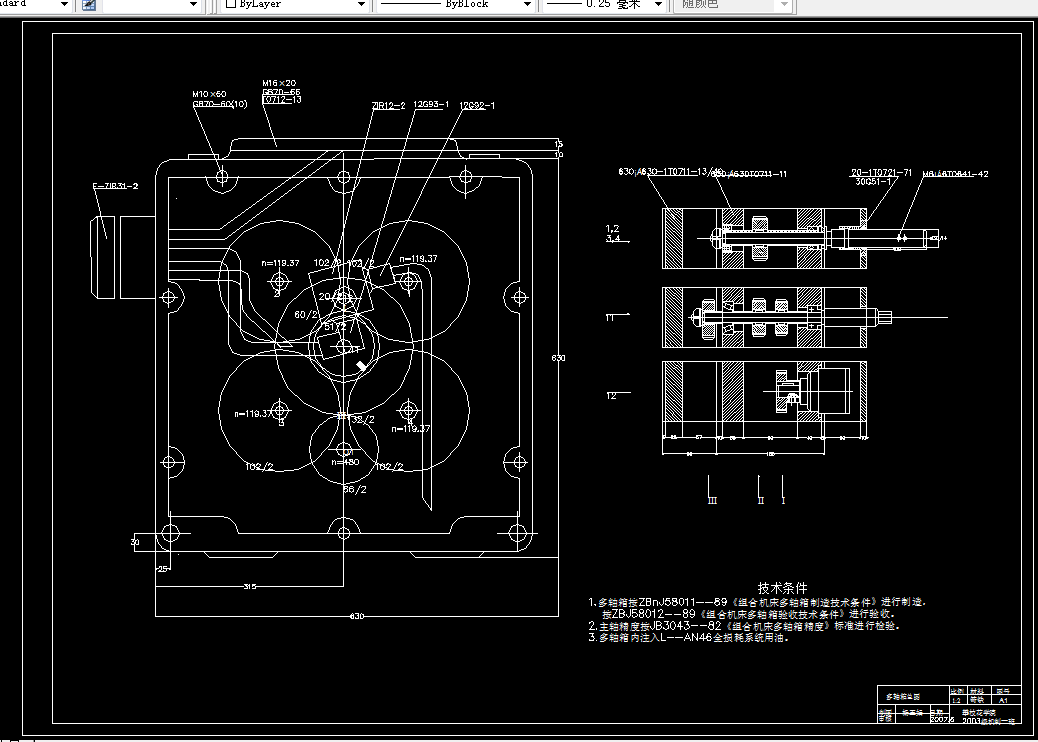 该组合机床由立柱、立柱底座、中间底座、液压滑台、动力箱、多轴箱等组成。本文对各部分的设计进行了详细的计算和论证。
