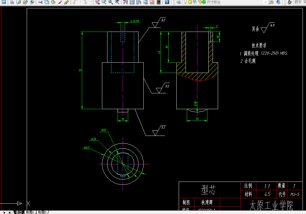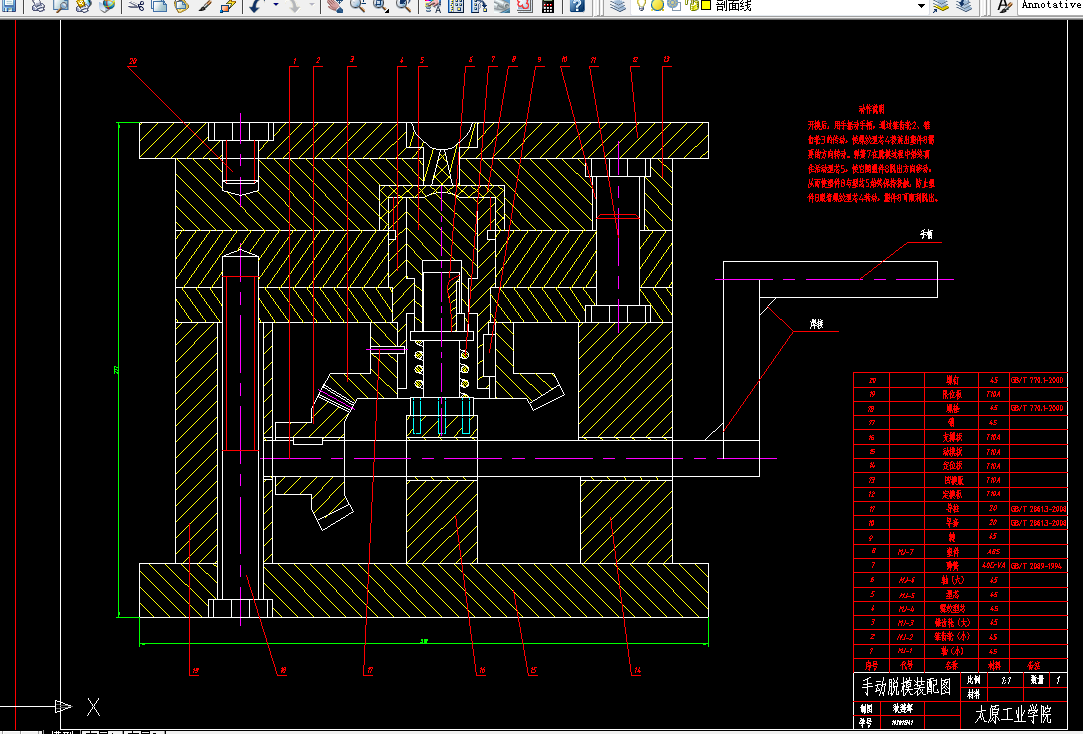 摘要:对于带有内螺纹的塑料制品,直接加工内螺纹会比较困难,对于注塑模具,螺纹的脱模通过侧向抽芯脱模和模外手动脱模都可完成,但是侧向抽芯脱模会比较复杂,膜外手动脱模会比较耗人力,而模内手动脱螺纹模具机构会大大降低人力、物力,操作也比较简单,适合于中小企业。此机构是通过一对锥齿轮的配合,可以在模外通过手动转动一个轴,控制轴上一个锥齿轮转动,从而带动另一个锥齿轮转动,让螺纹型芯随之转动,从而实现了脱螺纹的目的。对于此机构进行了深入研究,计算出了每个零件的尺寸,完成了三维实体图的绘制和动画仿真。
