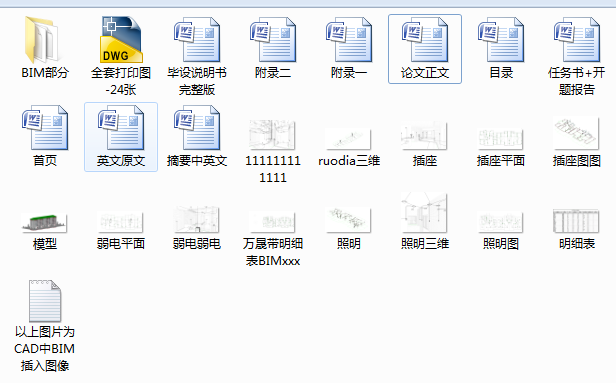 本次对郡原美村10#楼电气系统设计的电气施工图纸包含二十四张设计图纸,其中配电系统图为手绘的,十九张采用Auto CAD辅助制图,剩下的四张包括插座照明平面图、弱电平面图、明细表和整体设计图采用BIM软件生成。