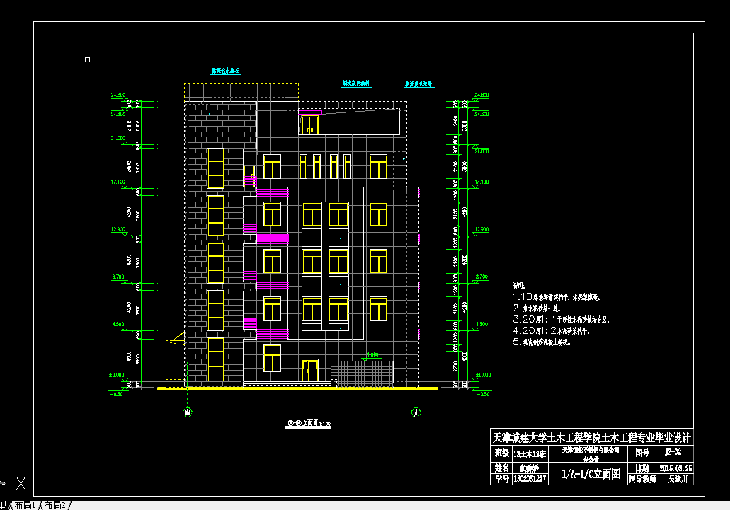 在结构设计时,采用D值法和弯矩二次分配法分别计算横向水平地震作用下框架内力和竖向荷载作用下框架内力;施工组织设计包括施工方案选择、施工计划、施工平面布置图设计和技术组织措施。工程施工进度计划的表达采用横道图方法。在造价计算时,施工图预算运用广联达进行了工程量计算,并编制了计算书。利用施工图预算结果,进行了工程量清单计价的编制。