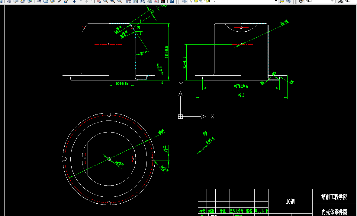 摘要:内壳体是应用在飞机上的一种小批量生产的中小型拉深件,零件结构较为复杂,成型工艺包括落料、拉深、整形、冲孔、翻边、修边等多个工序。本设计首先详细分析了内壳体零件的工艺性,制定了多种成型方案,通过分析比较,选择出最优方案,然后根据工件的形状和技术要求进行模具总体结构设计及主要零部件的结构设计。