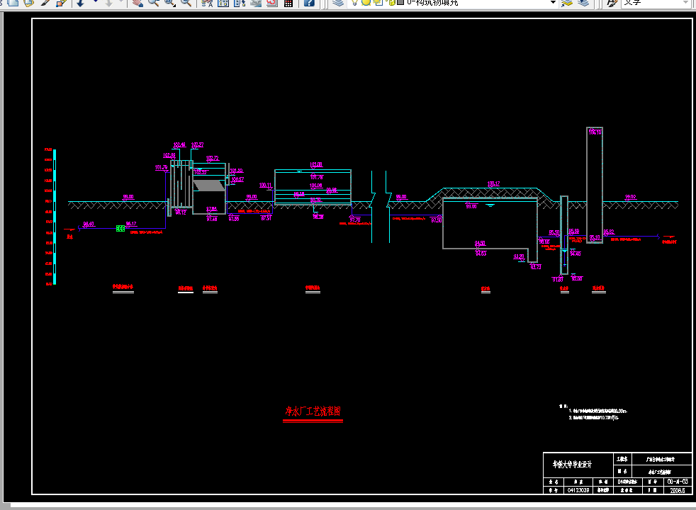 本设计说明书主要内容包括:设计原始资料;取水、净水、输水工程主要构筑物工艺设计计算;制水成本分析以及附录等。