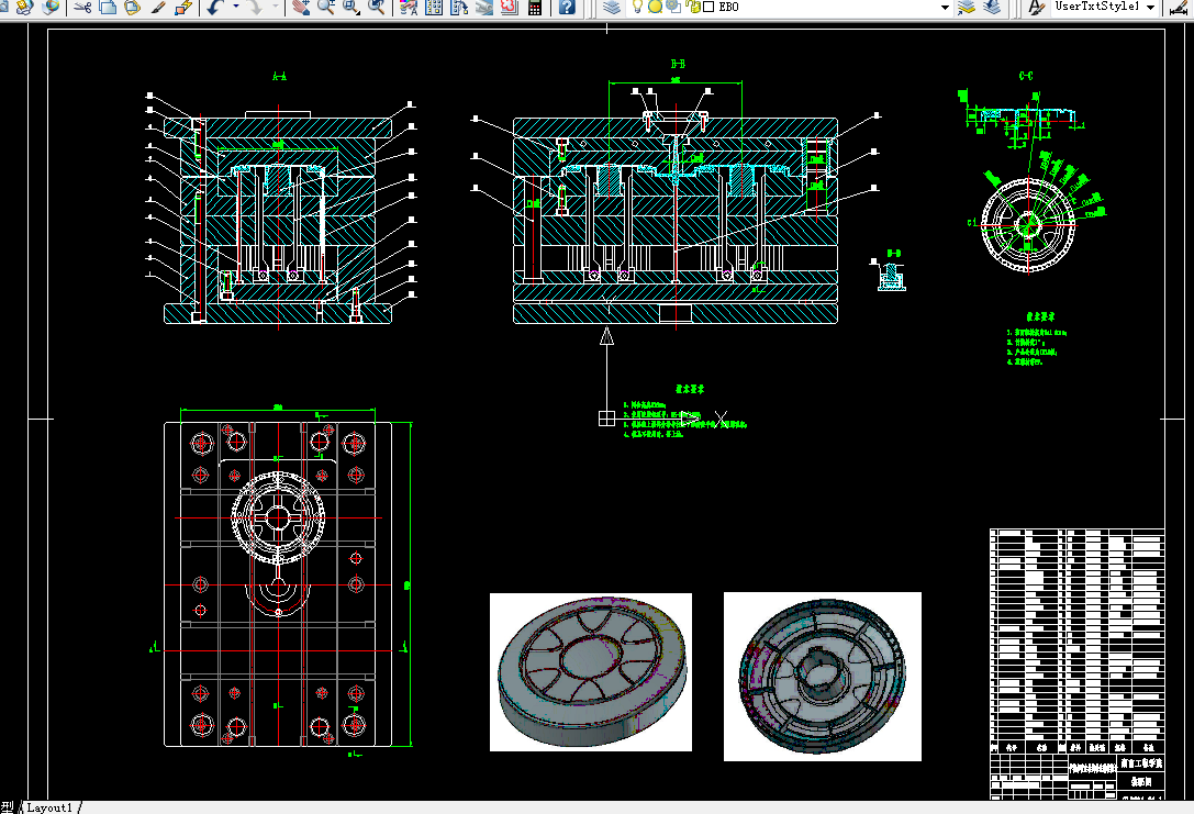 摘要:本设计的题目是:伊德尔吸尘器脚轮注射模设计,根据提供的塑料样品对其测绘并绘制出三维图,分析产品的结构和工艺,确定成型方案,进一步确定分型面的位置、浇口的位置和形式、顶杆的大小和分布、内侧抽芯机构的设计,注射机的参数等等。