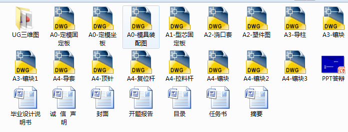 摘要:模具是工业生产的基础工艺装备。在本课题的说明书中简单描述了中国塑料模具的发展现状和模具制造技术的发展趋势,详细介绍了设计本副塑料模具的设计步骤和要点,校核了模具在结构和装配上的合理性。在长虹彩电CDH34166外包装把手注射模设计中,材料选择为ABS,是日常生活中常见的一种塑料产品。根据制件的大小、形状和精度要求等,将模具定为一模二腔,采用测浇口,自动脱凝料系统。采用推杆推出塑件,该课题从产品结构工艺性,具体模具机构出发,对模具的浇注系统、模具成型部分的结构、顶出机构、冷却系统、注塑机的选择及有关参数的校核、都有详细的设计。本副模具结构较简单,主要考虑的是成型问题和脱模机构的设计问题,其他就是型芯和型腔的加工问题。
