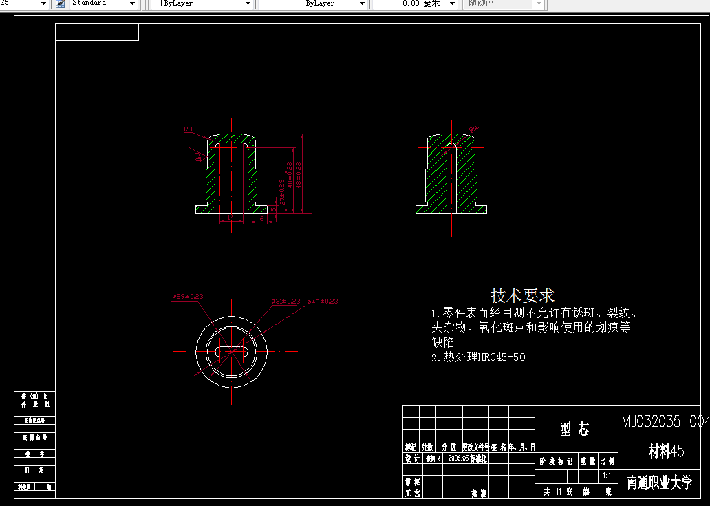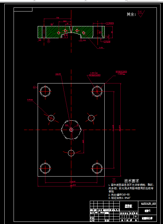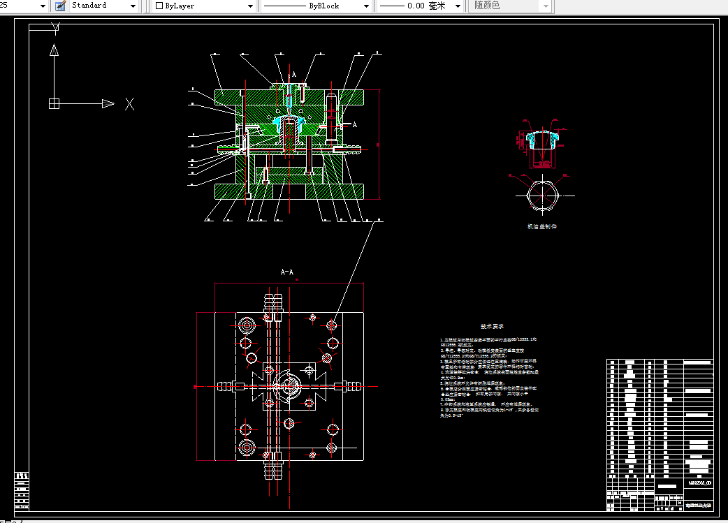 本篇设计说明书大体分为三大部分,第一部分是绪言,内容包括注塑模具的概述,塑料成型模具在加工工业中的地位,塑料模具的发展趋势以及塑料成型模具的分类。第二部分是注塑模具的总体设计, 内容包括塑料注塑模具的工作原理及应用, 设计准则以及材料的选择与产品见解. 注射机类型的选用, 注射机有关工艺参数的校核,浇注系统设计(浇口形式的选择以及尺寸计算,主流道尺寸的计算,冷料穴,排气槽),塑料注塑模具的设计计算, 包括模具结构设计[分行面的确定,凹模(型腔)结构形式,凸模的结构形式,凹模(型腔)和凸模工作部分的尺寸计算],导向机构的设计,推出机构的设计,抽芯机构的设计,冷却系统的设计等方面. 第三部分是介绍CAD/CAM在模具设计与制造上的应用, 包括Pro/ENGINEER实体设计,AutoCAD平面二维图纸的绘制,CAXA图幅,图框,标题栏的调用。
