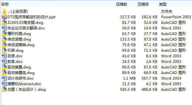 本次带式输送机设计代表了设计的一般过程, 对今后的选型设计工作有一定的参考价值。