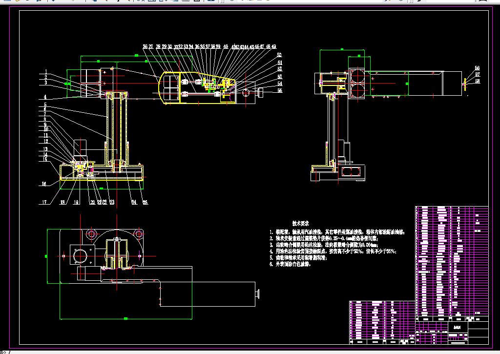 随着机器人技术的发展,机器人应用领域的不断扩大。工业关节机器人也是工业机器人的一个重要分支。工业机器人是集机械、电子、控制、计算机、传感器、人工智能等多学科先进技术于一体的现代制造业重要的自动化装备。本文简要介绍了关节型机器人机械手的概念,机械手硬件和软件的组成,机械手各个部件的整体尺寸设计,气动技术的特点。本文对机械手进行总体方案设计,确定了机械手的坐标形式和自由度,确定了机械手的技术参数。同时,设计了机械手的夹持式手部结构,设计了机械手的手腕结构,计算出了手腕转动时所需的驱动力矩和回转气缸的驱动力矩。设计了机械手的手臂结构。设计出了机械手的气动系统,绘制了机械手气压系统工作原理图,最后完成了本课题设计机械手的三维和二维建模。