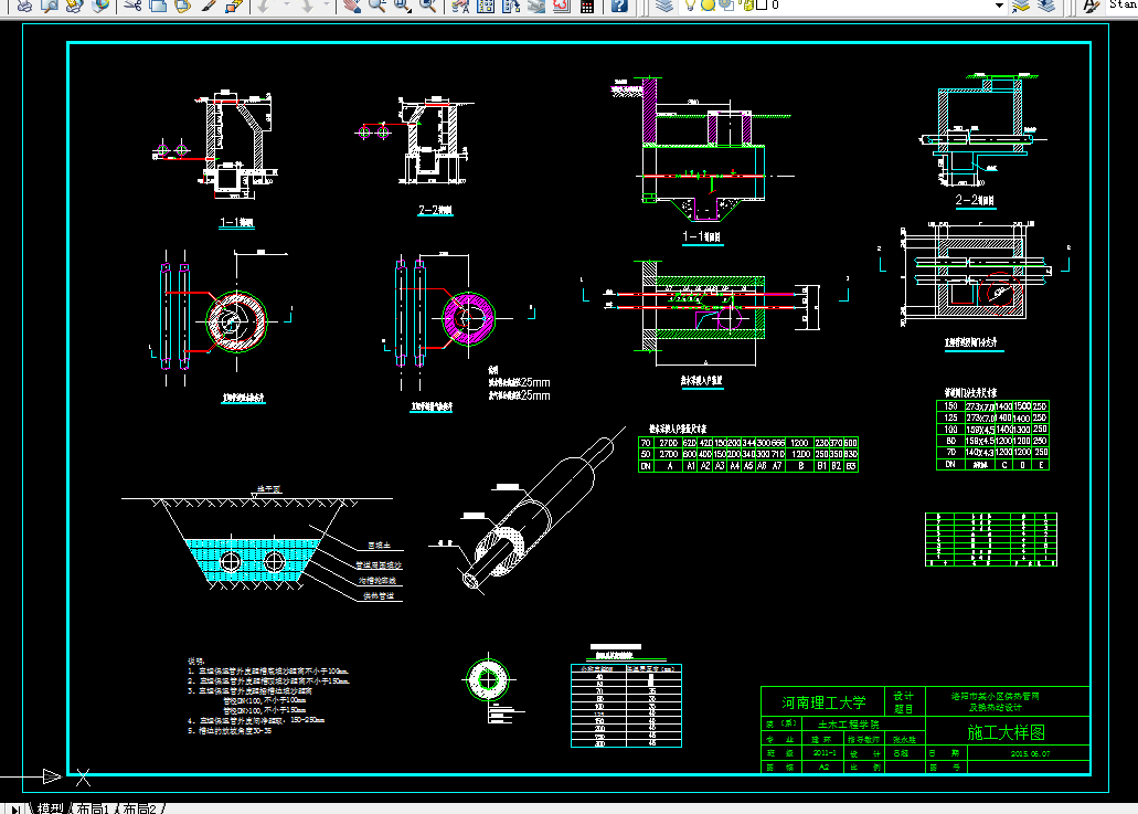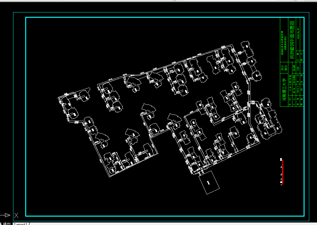 本工程为洛阳市某小区供热管网及换热站设计。小区内所有建筑物均为民用住宅,四周为商业网点。小区占地面积约为8万㎡,建筑面积约为16万㎡。供暖热负荷7172.70KW,总循环水量308.43t/h。