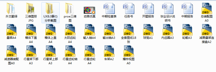 本文研究无人智能车轮边减速器,该减速器的结构为渐开线圆柱齿轮行星传动,齿圈固定,太阳轮为输入端,行星架为输出端。本次设计将使用pro/E建立三维模型,对轮边减速器的内部结构进行优化设计,并进行应力分析和动态仿真,通过强度校核增加减速器本身的强度,并对减速器的布置与连接进行了优化设计。