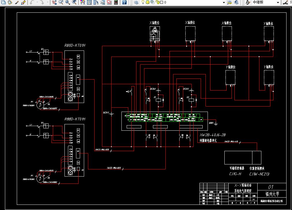 本文介绍一种基于PLC的伺服电机运动控制系统,其通过触摸式的可编程终端与PLC相连接对运动系统进行监控和操作。系统采用OMRON的CJ系列可编程控制器和CJ1W-NC213位置控制模块作为主要的控制装置,通过控制CJ1W-NC213的位置控制模块输出指令至伺服电机驱动器,经过伺服驱动器的数据转换后输出指令脉冲控制伺服电机的转速与旋转圈数。本系统具有原点搜索、手动操作、自动操作、单点定位等多种功能。根据系统所要完成的功能选择元器件,使用SolidWorks设计运动平台、传感器遮光板、传感器座等零件的设计并绘制三维图对各个部件的连接及分布进行设计。完成机械部分的设计后,使用CX-Programmer软件对位置控制器的公共参数、轴参数、操作存储器区、存储器操作区进行设置然后根据所设置的参数进行梯形图程序设计。同时,使用CX-Designer软件对触摸屏的主界面、手动操作界面、自动操作界面及报警提示界面进行设计。通过CX-Designer软件和CX-Programmer软件相结合进行程序的仿真模拟,确保程序正确无误后进行上机调试。
