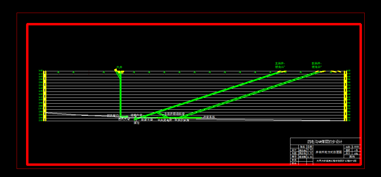 设计采用斜井煤门单水平开拓方式,共开掘有1个主斜井和1个副斜井和三个回风井。井田共划分有3个区段,开采煤层为4#。矿井采煤方法为综合机械化开采方式,综合机械化掘进,生产区队设置有:一个综采队和两个机掘队。