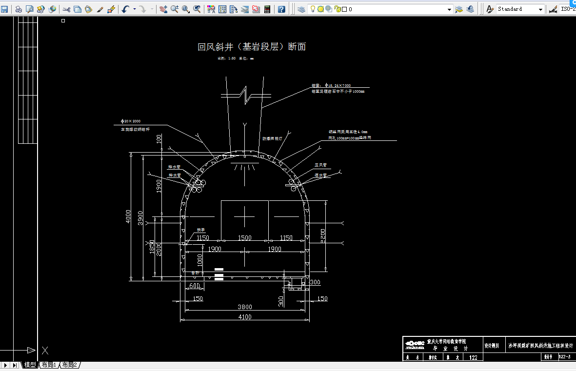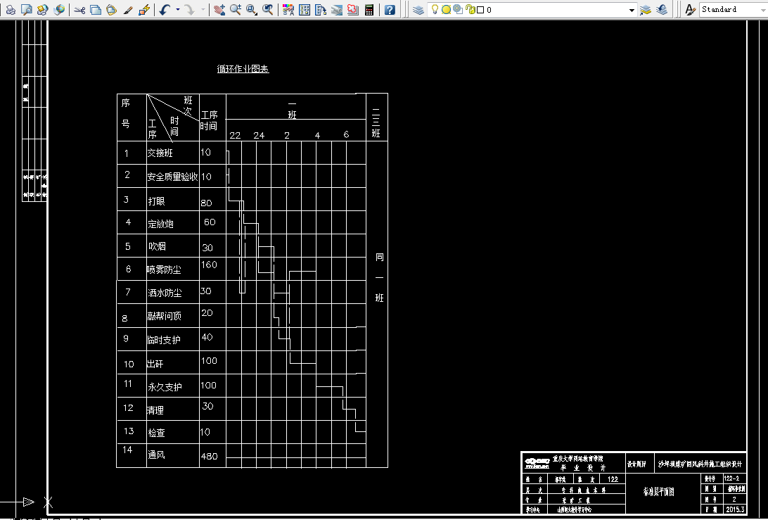 所需图纸有:1、炮眼布置图;2、巷道断面图;3、循环作业图。都采用AutoCAD2007版绘制