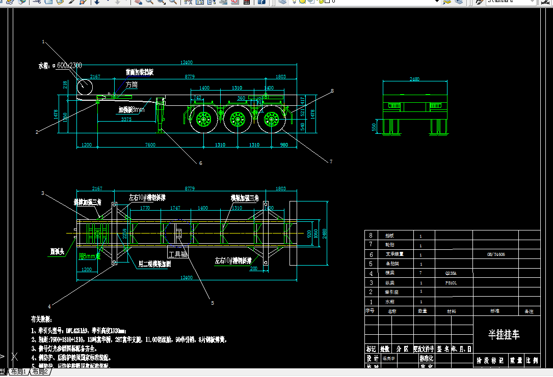 关键词:挂车,总体设计,车架