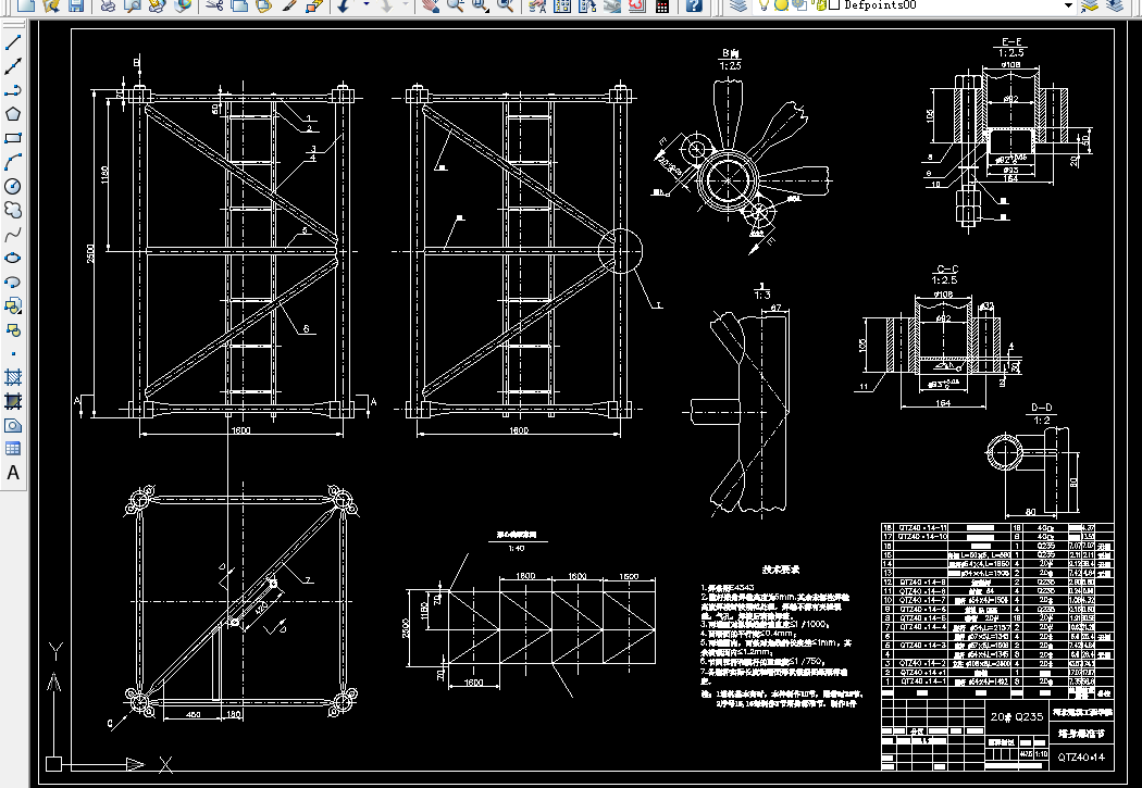 本次设计在参照同类塔式起重机基础上,对QTZ40型塔式起重机进行总体设计及塔身分析设计。在塔身设计工程中,采用了有限元法对其进行分析计算,采用了ANSYS10.0软件进行分析。