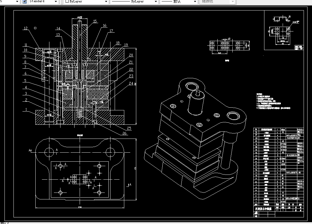 本文提出采用模具来生产托架的新工艺,并针对某规格夹具托架设计了复合模。该模具设计的难点主要是如何解决好零件中的孔冲裁、确定模具结构、如何进行模具的制造及冲裁方案选定等。本文结合托架的特点,具体解决了压力机的选择与校核、凸模和凹模刃口尺寸计算及结构设计、定位方案设计、卸料方式的设计、主要模具零件的加工工艺、标准零件的选用、模具的装配等一系列的设计工作,这些设计可为类似的零件模具设计提供现实的指导意义。此次模具设计的突出特点是尝试使用复杂的复合模具,解决常规冲压工艺模具套数多、工艺路线长、生产成本高、效率低等缺点,并为以后此类零件冲压工艺的编制及模具设计提供了可靠的依据。