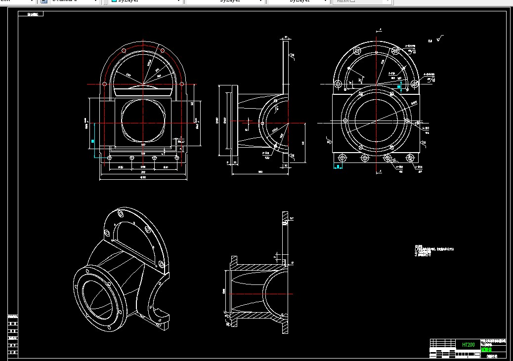 本设计是基于高浓浆泵端盖零件的加工工艺规程及一些工序的专用夹具设计。高浓浆泵端盖零件的主要加工表面是平面及孔系。一般来说,保证平面的加工精度要比保证孔系的加工精度容易。因此,本设计遵循先面后孔的原则。并将孔与平面的加工明确划分成粗加工和精加工阶段以保证孔系加工精度。基准选择以高浓浆泵端盖的输入轴和输出轴的支承孔作为粗基准,以顶面与两个工艺孔作为精基准。主要加工工序安排是先以支承孔系定位加工出顶平面,再以顶平面与支承孔系定位加工出工艺孔。在后续工序中除个别工序外均用顶平面和工艺孔定位加工其他孔系与平面。支承孔系的加工采用的是坐标法镗孔。整个加工过程均选用机床。夹具选用专用夹具,夹紧方式多选用气动夹紧,夹紧可靠,机构可以不必自锁,因此生产效率较高,适用于大批量、流水线上加工,能够满足设计要求。