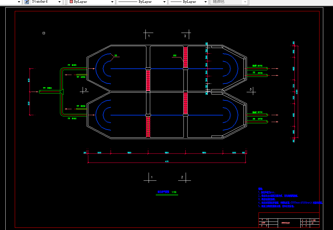 本设计中,采用DE型氧化沟处理该城市污水。处理构筑物主要有平流沉砂池、DE型氧化沟、二沉池等,其主要构筑物DE型氧化沟系统是在DE型氧化沟基础上发展起来的,有2个平行的氧化沟和一个独立的沉淀池组成,处理程度大大提高,该系统可进行硝化,反硝化反应,从而达到生物脱氮的功能,在其系统前增设厌氧池则可达到除磷的目的。该系统具有高效,节能的特点,且耐冲击负荷高,出水水质好。