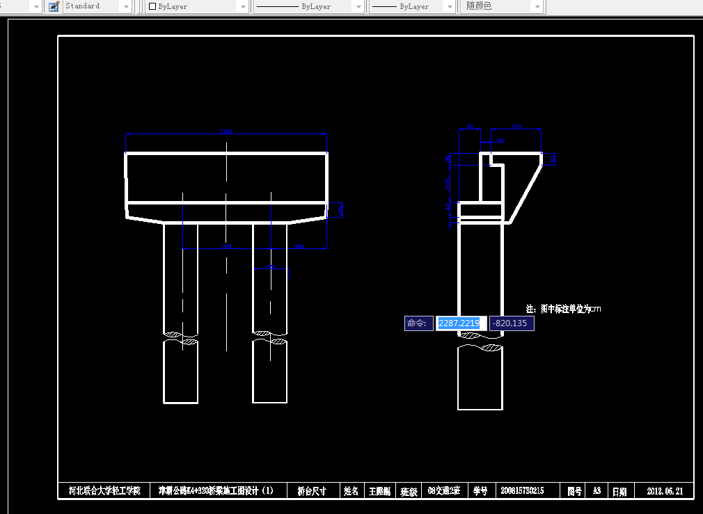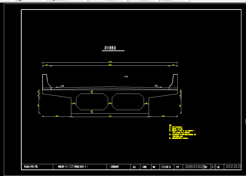 关键词: 预应力混凝土;连续梁桥;箱型梁;单箱双室;修正偏心压力法;AutoCAD。