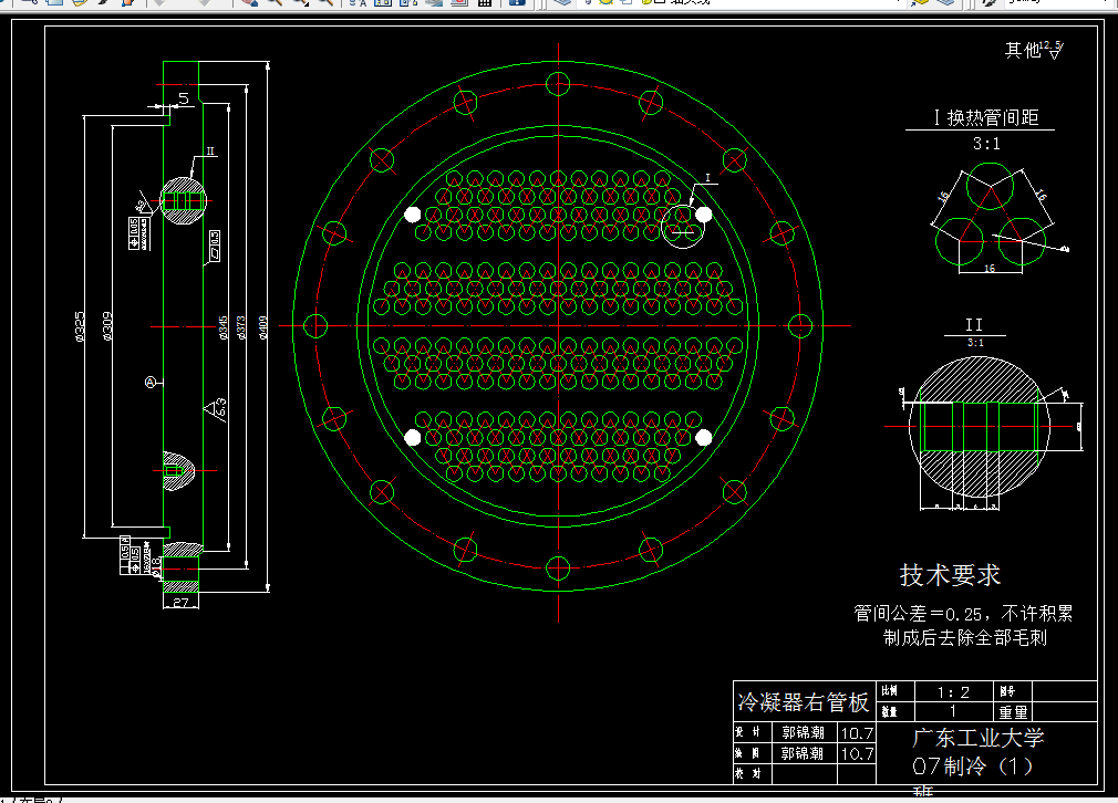 关键词:冷凝器 管壳式 传热设计 流动阻力计算 结构设计 强度计算