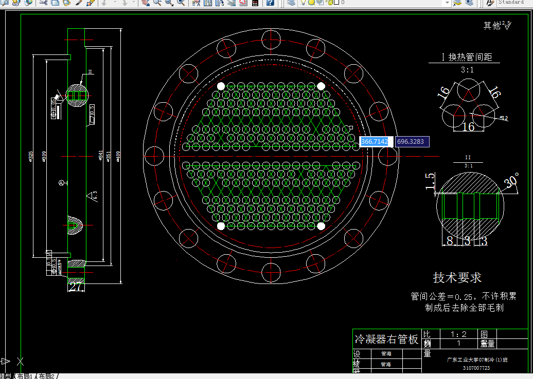 关键词:冷凝器 管壳式 传热设计 流动阻力计算 结构设计 强度计算