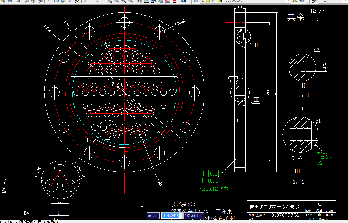 最终完成了一个材料节省,满足要求,结构合理的壳管式干式蒸发器。