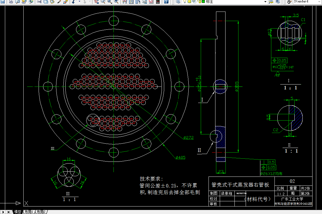 最终完成了一个材料节省,满足要求,结构合理的壳管式干式蒸发器。