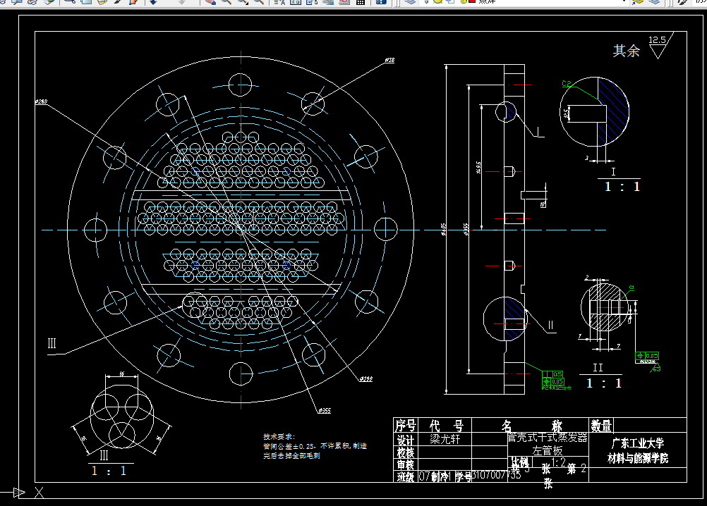 最终完成了一个材料节省,满足要求,结构合理的壳管式干式蒸发器。